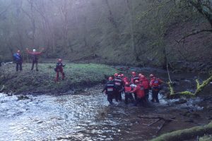 A 71 year old male hill walker from Chesterfield had slipped whilst walking below Chee Tor Buttress and fallen about four metres into the River Wye sustaining a serious head injury.