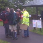 Photo: Entrants receive a route and saftey brief before setting off for a day in showers and chilly winds.